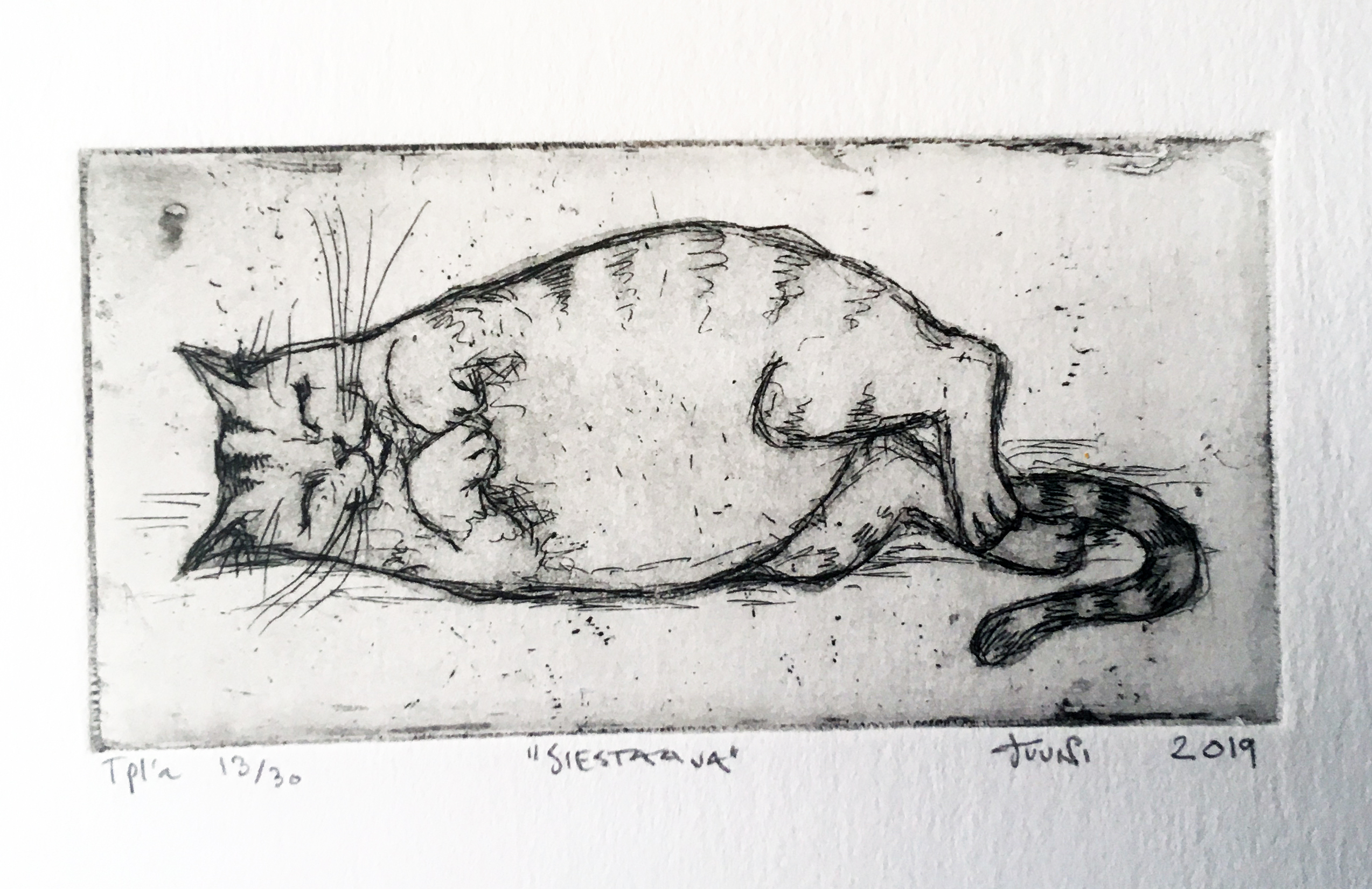 Etusivu / Kissajuttuja / Siestaaja Siestaaja65,00 € Varasto loppu Osastot: Kissajuttuja, Taidegrafiikka Kuvaus Lisätiedot Kuvaus Metalligrafiikan vedos. koko:12,2 cm x 6,3cm vedosmäärä: 30kpl 2019 Lisätiedot Paino 5 g (gramma) Tutustu myös Oot super ihana -magneetti 4,00 € Ostoskoriin Tampere- Kissakortti 2,00 € Ostoskoriin Kissakortti-setti 4,00 € Ostoskoriin Onnea ei voi…- Kissakortti 2,00 € Ostoskoriin
